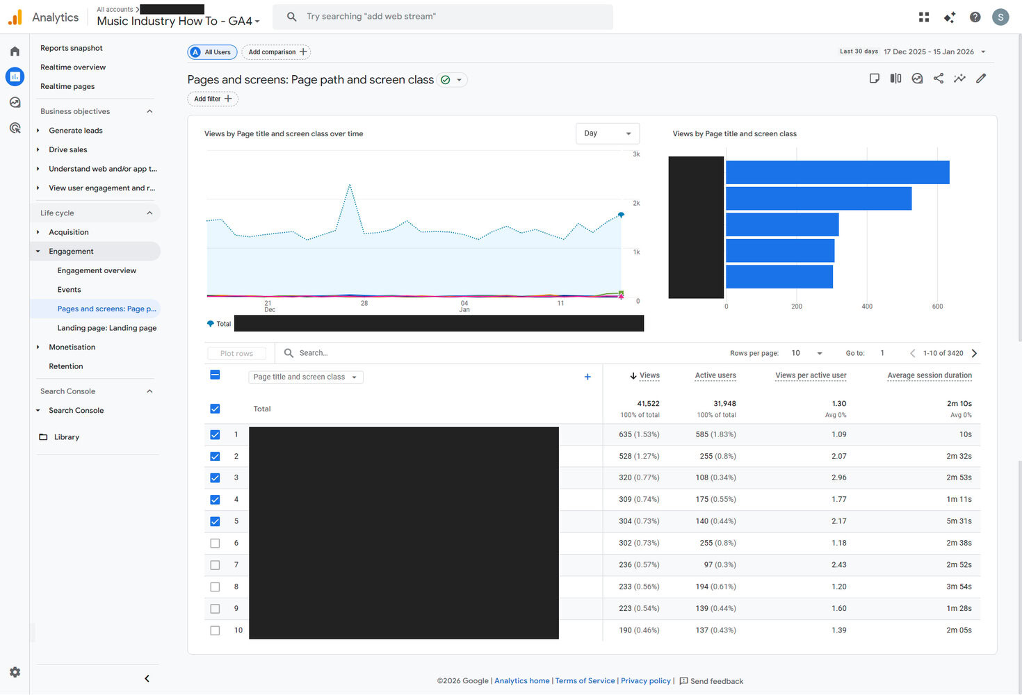 Page views and sessions duration in GA4 (Google Analytics, first party data):